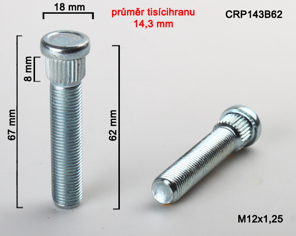- Kolový Svorník M12x1,25x62mm, průměr tisicíhranu 14,3mm